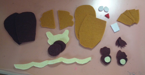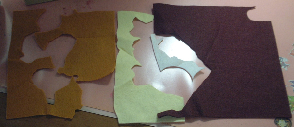 材料のフェルトです。薄い方の茶色が少ないような気がしますが、気のせいじゃありません。