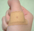 薄く皮が剥けただけだったので大丈夫だろうと思ったのですが、暫くしたら血が止まらなくなったのでリバテープを貼ってみたら、あの四角い所が日の丸みたいになっていたので記念撮影してしまいました。