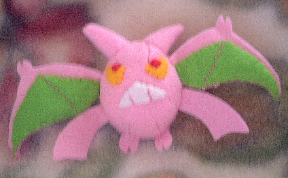 フェルト:モモバット 旧サイト付属ブログ 2008/05/05(月)11:20 技構成が、身代わり・怪しい光・メロメロ・エアスラッシュの色違いクロバットを持っていてその身代わり人形みたいなものを作ってみたいなと前々から思ってはいたものもなかなか行動に移せずにいましたが、ようやく作れました。