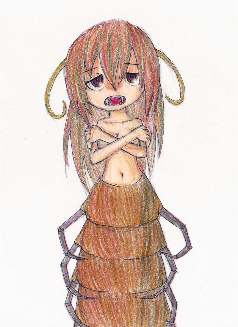 ムカデ娘 旧サイト付属ブログ 2010/09/07(火)18:41 頑張ってムカデの画像見ながら描こうと思ったのですが、 ウィキペの下の方のゲジ画像に怖気づいたので、 ウィキペの上の方に乗ってるやつしか見てません。寝る前にやることじゃなかったと思う。