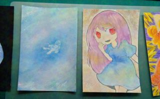 展示関連 GIFT展:3日目 3日目が終わり、明日が最終日となりました。日々ありがとうございます、明日もよろしくお願いいたします!今日はラメ絵の具を使った絵と旧作の紹介をー。ラメはこの2点。ギラッギラって感じでよく見えるタイプのラメです。使ったのはこちら、ターナーのアクリルガッシュのラメクリアオパールですかね。スキャンや写真でも... 2024/08/10(土)23:00 0 展示関連
