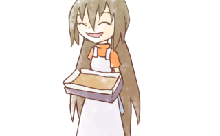 ケーキが焼けました。美味しいよ。 オーブンで手の甲を火傷しました。痛い。